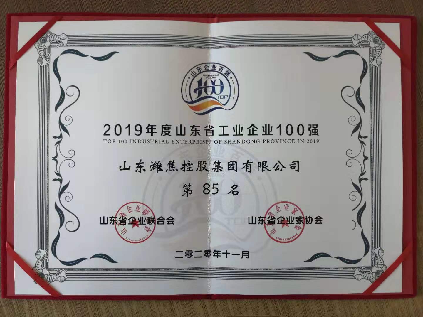 11月11日,山東省工業(yè)和信息化廳、山東省企業(yè)聯(lián)合會(huì)聯(lián)合發(fā)布了2019年山東省綜合百?gòu)?qiáng)和工業(yè)百?gòu)?qiáng)名單,山東濰焦控股集團(tuán)有限公司榮登山東省工業(yè)百?gòu)?qiáng)企業(yè)榜單,位列第85位。