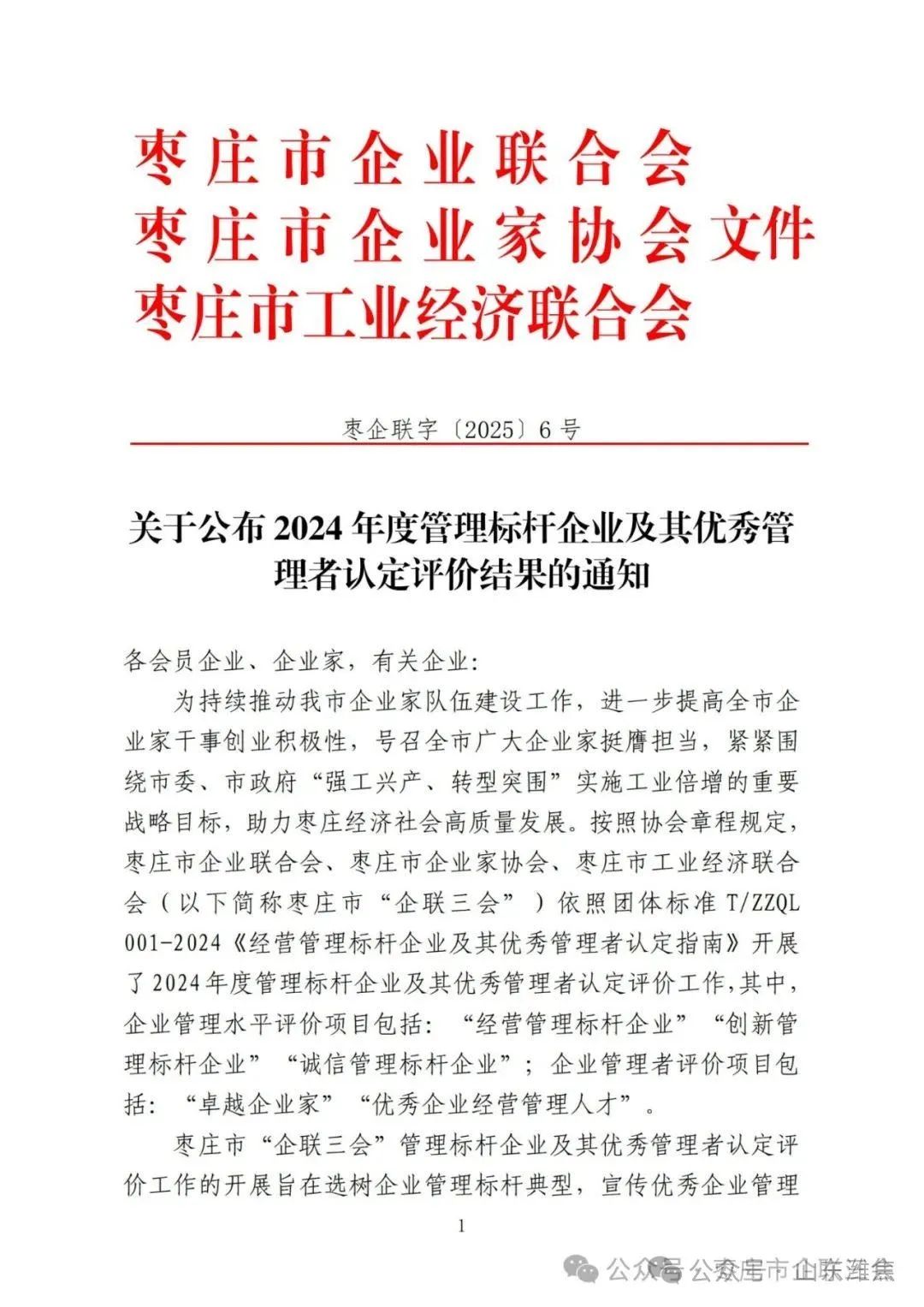 近日,棗莊市企業(yè)聯(lián)合會(huì)、棗莊市企業(yè)家協(xié)會(huì)、棗莊市工業(yè)聯(lián)合會(huì)發(fā)布《關(guān)于2024年管理標(biāo)桿企業(yè)及其優(yōu) 秀管理者認(rèn)定評(píng)價(jià)結(jié)果的通知》,山東濰焦集團(tuán)薛城能源有限公司、棗莊杰富意振興化工有限公司榮獲2024年度“經(jīng)營管理標(biāo)桿企業(yè)”稱號(hào)。這是對(duì)兩公司經(jīng)營管理水平、管理創(chuàng)新能力等方面的充分肯定和認(rèn)可。