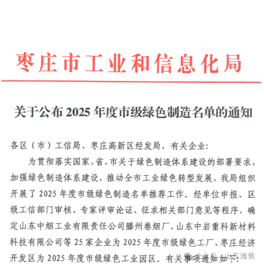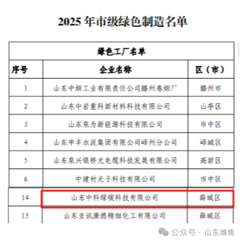 近日,棗莊市工信局公布2025年度市級綠色制造名單,山東中科綠碳公司以二氧化碳資源化利用領域的創(chuàng)新實踐與綠色制造體系建設成效成功入選。這一榮譽既是對企業(yè)技術實力與環(huán)保責任的認可,也標志著其在棗莊制造業(yè)綠色低碳轉型中的示范作用獲得肯定。